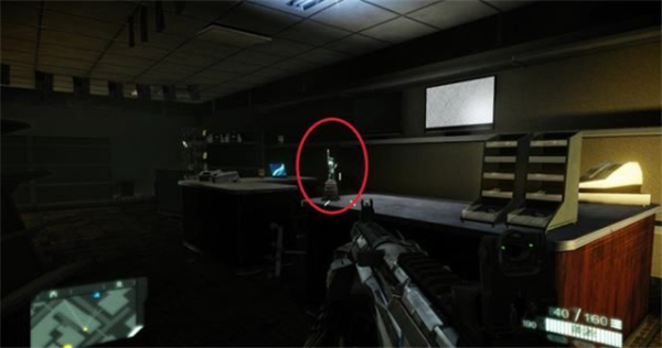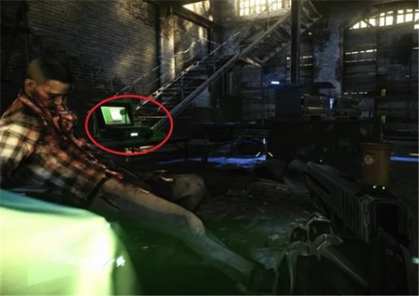 跟隨指引完成隱匿和槍械配件的教程后,在下圖標記的桌子上拿到收集品“電子郵件”。