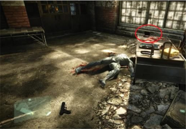 醒來后,強撐著身體撿起手槍,靠近尸體的時候可以觀看此人留給我們的影像。