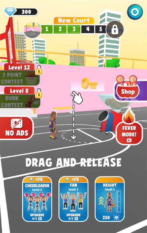玩家只需要用手指來拖動游戲中的人物,來使得它的手中的籃球投入籃筐,就能獲得想對應的得分。