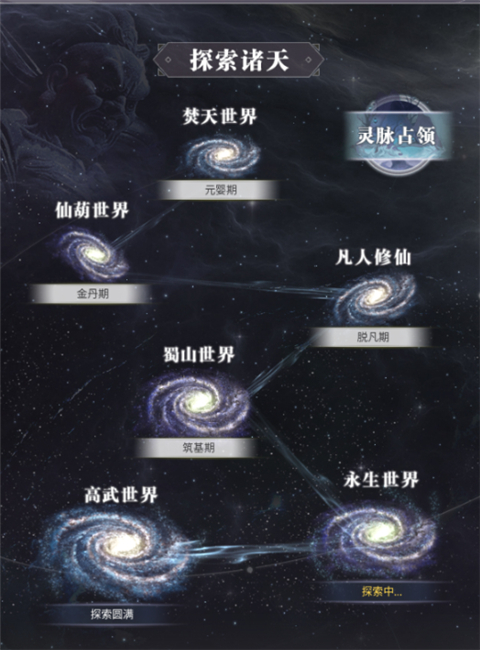 4、探索諸天:當(dāng)玩家到達(dá)一定等級(jí)后,將會(huì)解鎖探索諸天功能,可以在諸天世界中自由探索,進(jìn)行采集或者戰(zhàn)斗獲取收益,還有幾率遭遇各種奇遇事件。