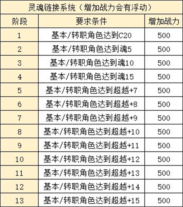 英雄成長(zhǎng)階段主要分為進(jìn)化(升六星)-覺醒至6階(藍(lán)六+6)-追逐者0-25(c25)-靈魂印記(s15),在形態(tài)核心后可以用相同的英雄進(jìn)行升級(jí),也可以用作超越7階段以上的用途,超越7以上轉(zhuǎn)職新增靈魂鏈接系統(tǒng),在轉(zhuǎn)職和本體達(dá)到同樣的超越7以上的等級(jí)時(shí)有戰(zhàn)力加成,但是消耗也超級(jí)加倍,如果資源充足的話,可以留一些本體進(jìn)行超越,以下是靈魂鏈接系統(tǒng)增加的戰(zhàn)力: