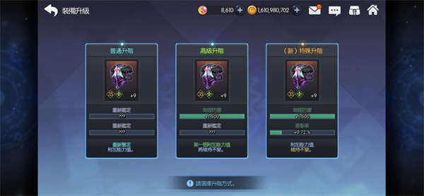 升級(jí):主要進(jìn)行裝備升級(jí),例如從35裝備升到38裝備,有三種方式可以選擇,第一個(gè)是不保存任何屬性進(jìn)行升級(jí),要求材料也少,第二個(gè)是保存第一條屬性進(jìn)行升級(jí),重置其他屬性,第三個(gè)是全部保存,但需要特殊道具,一般只能氪金獲得,裝備升級(jí)素材主要通過(guò)Raid和次元裂隙獲取;