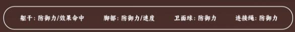 解析:多動增加上盾效率,腳部必選速度,軀干是效果命中增加嘲諷概率。