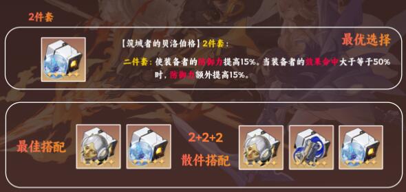 解析:筑城者的貝洛伯格2件套是核心,防御力提高,命中效果也會提升,還可以讓嘲諷幾率增加。