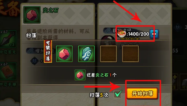 4、在掃蕩的時候,要消耗體力才可以掃蕩到材料