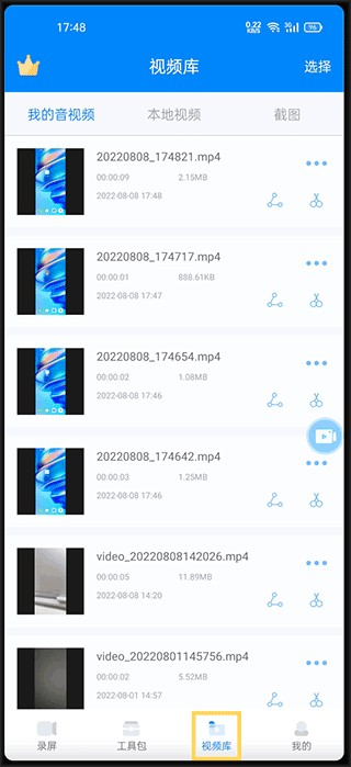 5、所錄視頻在EV錄屏的視頻庫中可找到。