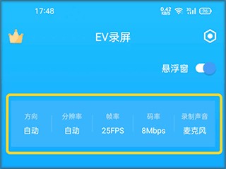 1、下載安裝好EV錄屏app,根據(jù)需要,可進(jìn)行基礎(chǔ)錄屏設(shè)置。