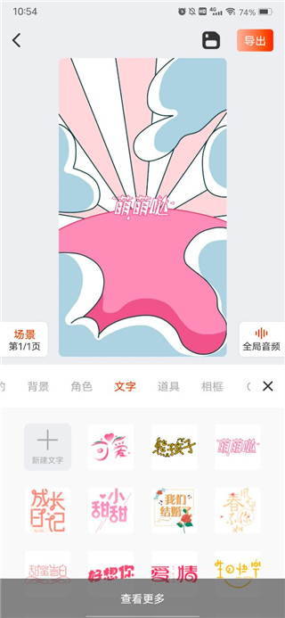 4、根據自己的需要添加背景、文字、音樂等,完成點擊右上角“導出”;