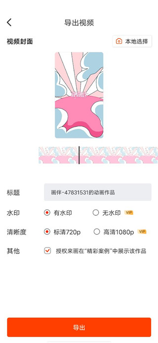 5、然后可以自己選擇視頻封面、標題等設置,完成后點擊下方“導出”按鈕;